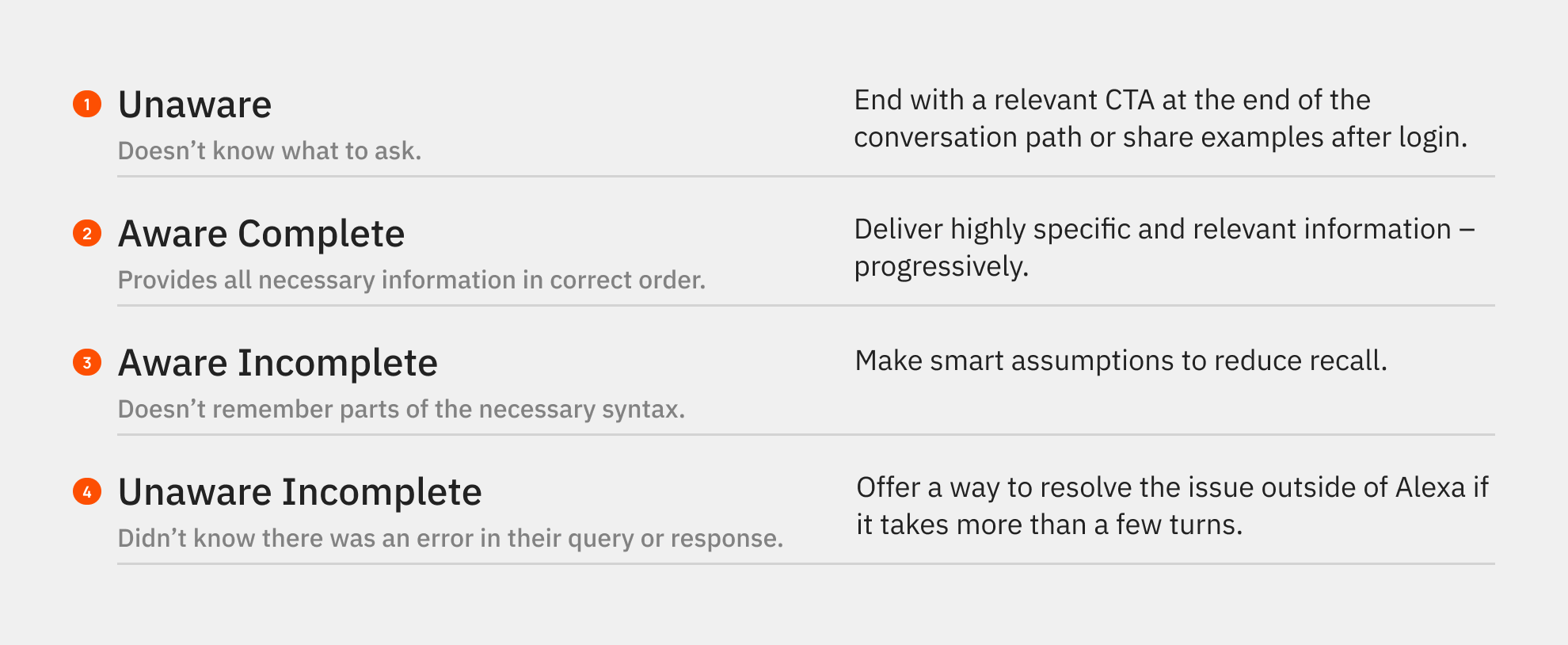 Alexa needed to correctly understand customers’ varying intents so it can invoke the right conversational experience that solved their problem. But we shouldn’t penalize them for using the “wrong” queries and syntax; we should anticipate and meet them where they are.